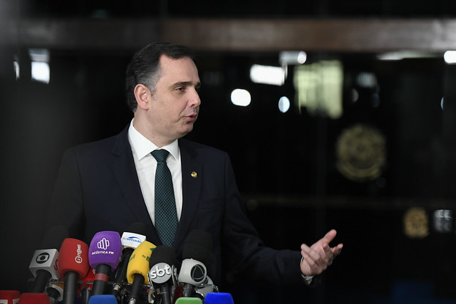 Presidente do Senado Federal, senador Rodrigo Pacheco (PSD-MG), concede entrevista coletiva sobre as atividades legislativas.