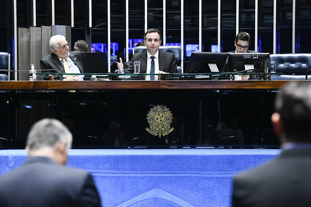 Plenário do Senado Federal durante sessão deliberativa extraordinária semipresencial.