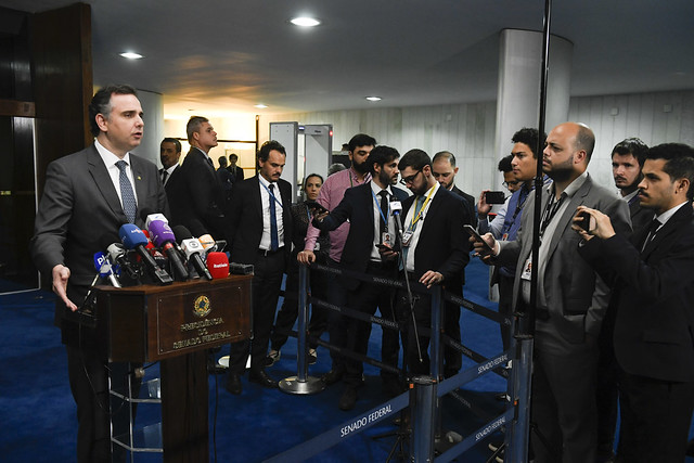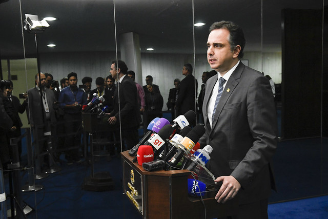 Presidente do Senado Federal, senador Rodrigo Pacheco (PSD-MG), fala sobre as atividades legislativas.