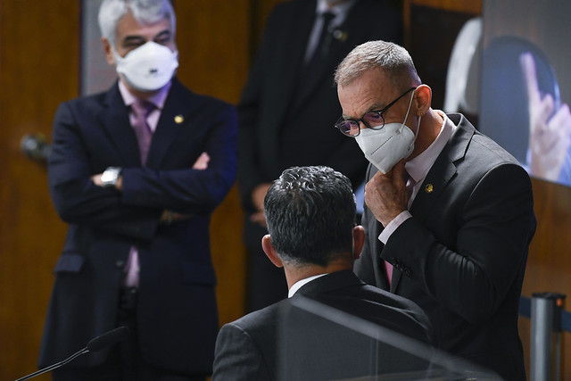 Senadores conversam com a imprensa sobre os trabalhos da CPI da Pandemia. Nesta terça-feira (10), os senadores da CPI ouvem o depoimento do presidente do Instituto Força Brasil.