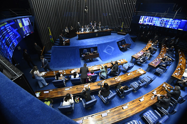 Plenário do Senado Federal durante sessão deliberativa ordinária semipresencial.