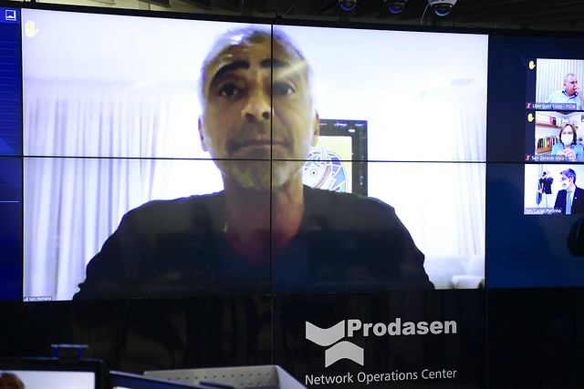 Sessão Deliberativa Remota (SDR) do Senado Federal realizada a partir da sala de controle da Secretaria de Tecnologia da Informação (Prodasen).