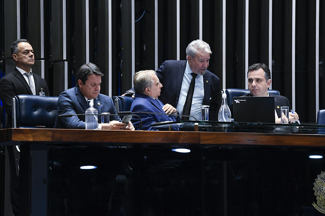 Plenário do Senado Federal durante sessão deliberativa ordinária semipresencial.