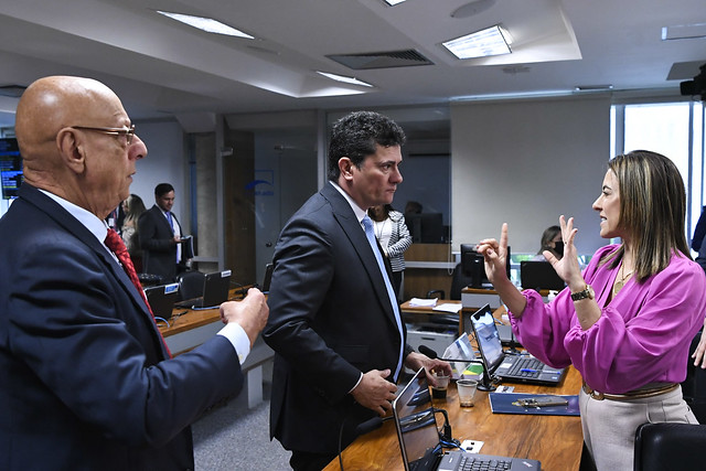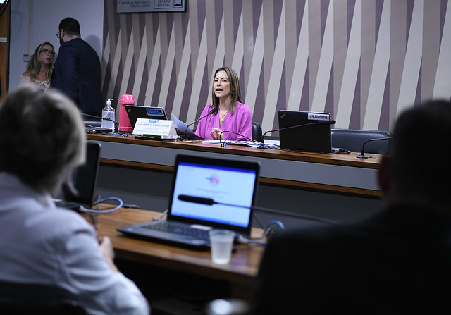 À mesa, presidente da CRA, senadora Soraya Thronicke (União-MS), conduz reunião.