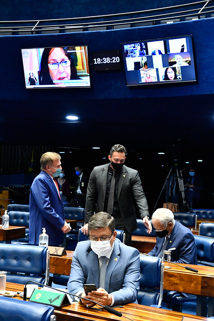 Plenário do Senado Federal durante sessão conjunta do Congresso Nacional (para senadores) destinada à deliberação dos Vetos nºs 4, 14, 18, 19, 20, 22 a 52 de 2021 e dos Projetos de Lei do Congresso Nacional n°s 12, 13 e 15 de 2021.