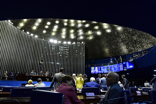 Plenário do Senado Federal durante sessão deliberativa ordinária destinada à deliberação de autoridades sabatinadas pela Comissão de Assuntos Econômicos (CAE) e pela Comissão de Serviços de Infraestrutura (CI). Também está na ordem do dia o PLP 41/2019, que define mecanismos de avaliação e revisão dos incentivos e benefícios fiscais.