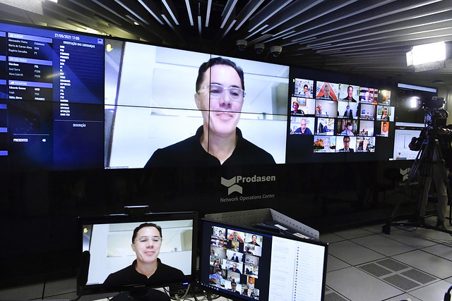 Sessão Deliberativa Remota (SDR) do Senado Federal realizada a partir da sala de controle da Secretaria de Tecnologia da Informação (Prodasen).