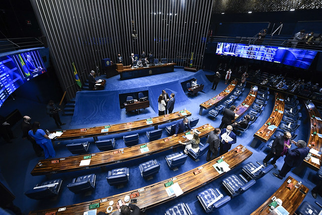 Plenário do Senado Federal durante sessão deliberativa ordinária semipresencial.