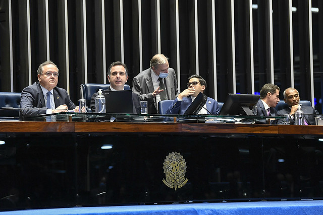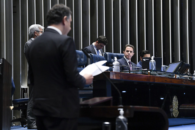 Plenário do Senado Federal durante sessão deliberativa ordinária semipresencial.