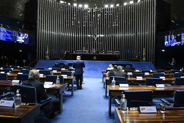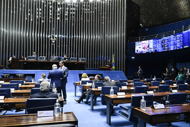 Plenário do Senado Federal durante sessão deliberativa ordinária semipresencial. Ordem do dia.