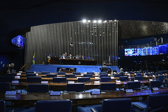 Plenário do Senado Federal durante sessão deliberativa ordinária semipresencial. Ordem do dia.