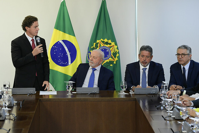 Vice-presidente do Senado Federal, senador Veneziano Vital do Rêgo (MDB-PB), e o presidente da Câmara dos Deputados, deputado Arthur Lira (PP-AL), apresentam para o presidente da República o decreto legislativo (PDL 1/2023) que aprovou a intervenção federal na área de segurança pública do governo do Distrito Federal.