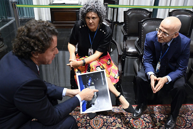A diretora e o coordenador da Secretaria Agência e Jornal do Senado (Sajs) reúnem-se com o vice-presidente do Senado Federal, senador Veneziano Vital do Rêgo (MDB-PB), para apresentar o Livro "Senado Remoto - A Ação do Legislativo na Pandemia de Covid-19".