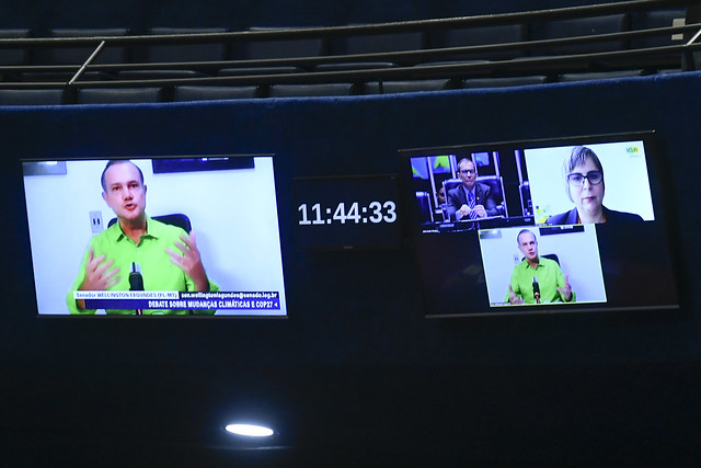 Plenário do Senado durante sessão de debates temáticos para discutir o cumprimento das metas da NDC (sigla em inglês para Contribuição Nacionalmente Determinada) firmadas na COP-26 (Conferência das Partes das Nações Unidas sobre Mudanças Climáticas), bem como as propostas do Brasil para a COP-27.