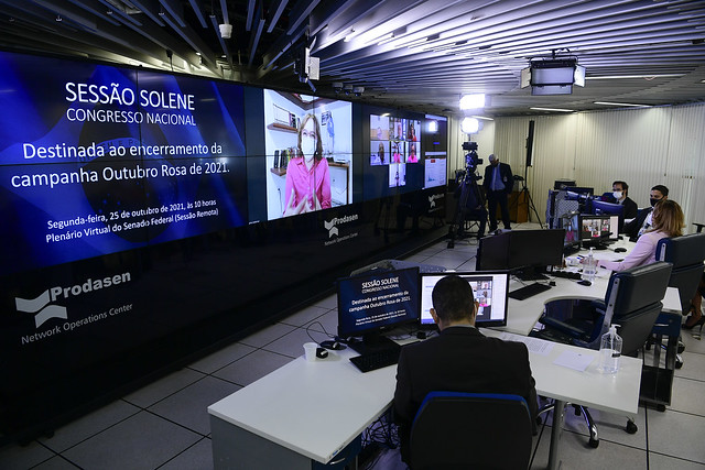 Sessão solene remota do Congreso Nacional, realizada a partir da sala de controle da Secretaria de Tecnologia da Informação (Prodasen), destinada ao encerramento da campanha Outubro Rosa de 2021.