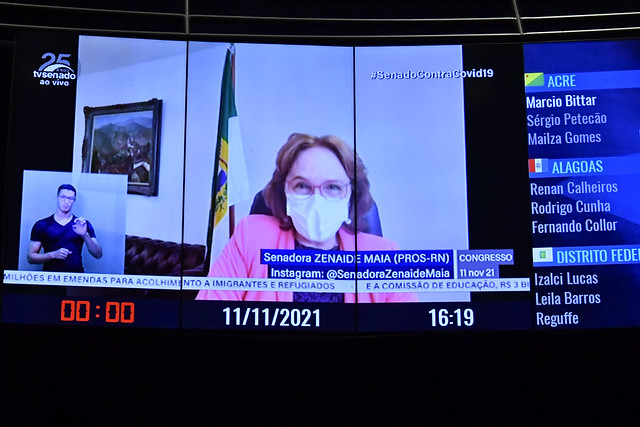 Painel exibe, segundo-vice-presidente do Senado Federal, no exercício da Presidência, senador Romário (PL-RJ).