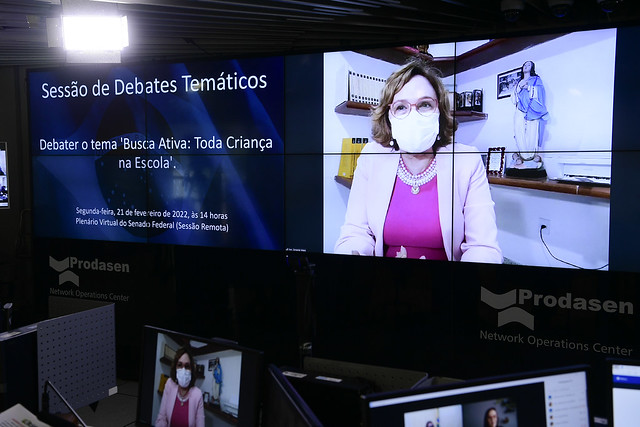 Sessão de debates temáticos remota, realizada a partir da sala de controle da Secretaria de Tecnologia da Informação (Prodasen), para debater o tema “Busca ativa: toda criança na escola”. O objetivo da sessão é debater estratégias e garantir o retorno e a permanência de crianças, adolescentes e jovens nas escolas públicas brasileiras.