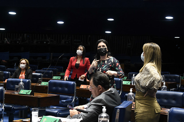 Plenário do Senado Federal durante sessão deliberativa extraordinária semipresencial.