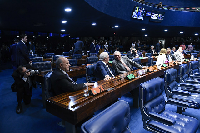 Plenário do Senado Federal durante sessão deliberativa ordinária semipresencial.