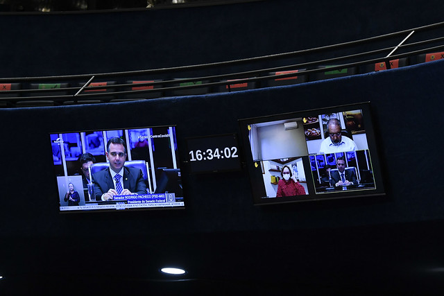 Plenário do Senado Federal durante sessão deliberativa ordinária semipresencial.