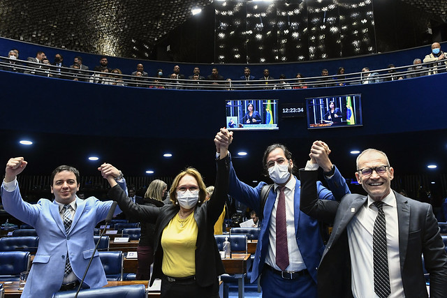 Plenário do Senado Federal durante sessão deliberativa extraordinária semipresencial.
