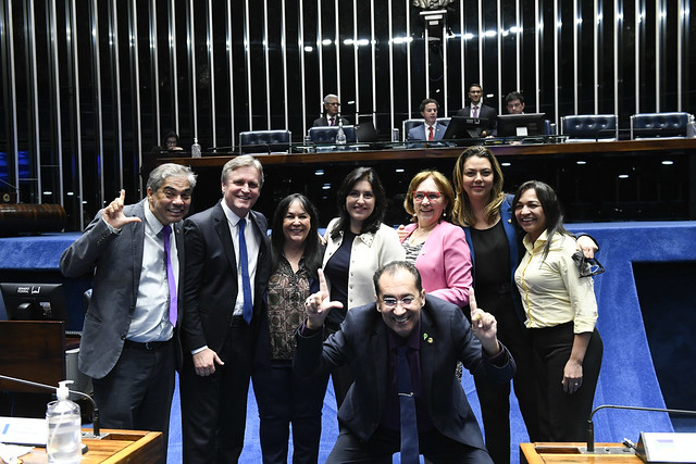 Plenário do Senado Federal durante sessão deliberativa ordinária semipresencial.